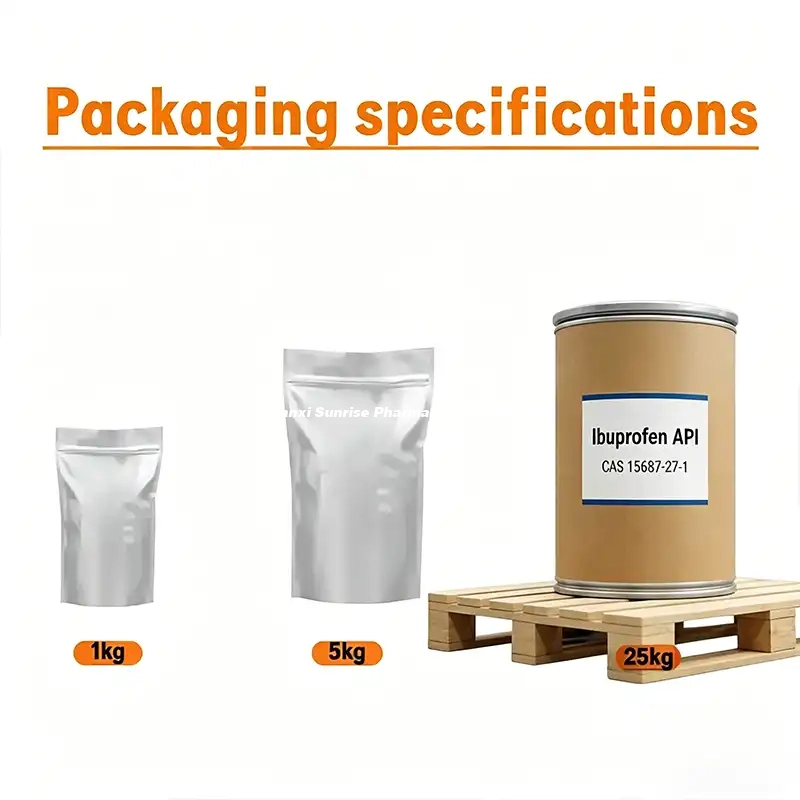 Buy high-purity Ibuprofen API (CAS 15687-27-1) ≥99.5% from Shaanxi Sunrise Pharmaceutical. GMP-certified, USP/EP compliant white crystalline powder for fever and inflammation R&D. Bulk supply and worldwide shipping. Request a COA today